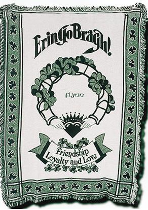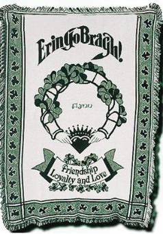 | Celtic Crests offers this 100% Cotton uniquely Irish Claddagh Throw with Erin Go Bragh (Ireland Forever) above the Claddagh design and Personalized with an Embroidered Name between the arms of the Claddagh. |